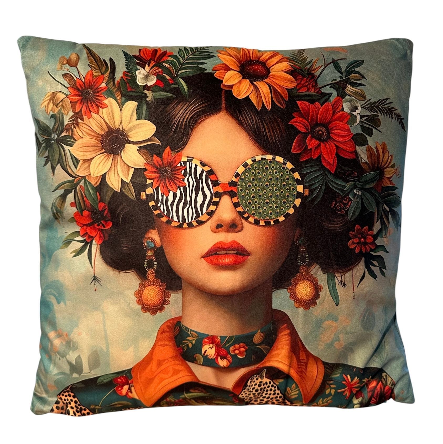 - Print on both sides, with piping trim and a concealed zip.