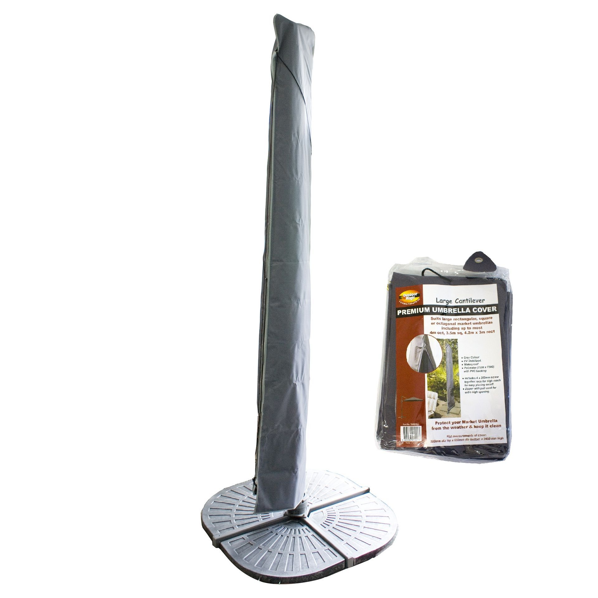 - Suits large rectangular, square or octagonal umbrellas including up to most 4m oct, 3.5m sq, 4.2m x 3m rect including Asta (all)